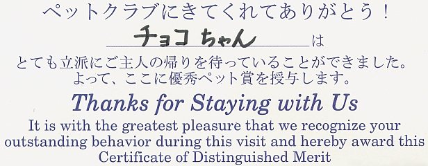 TDR では、ペットを預ってくれる施設があるのですが、帰りに、こんなのをくれます。 |